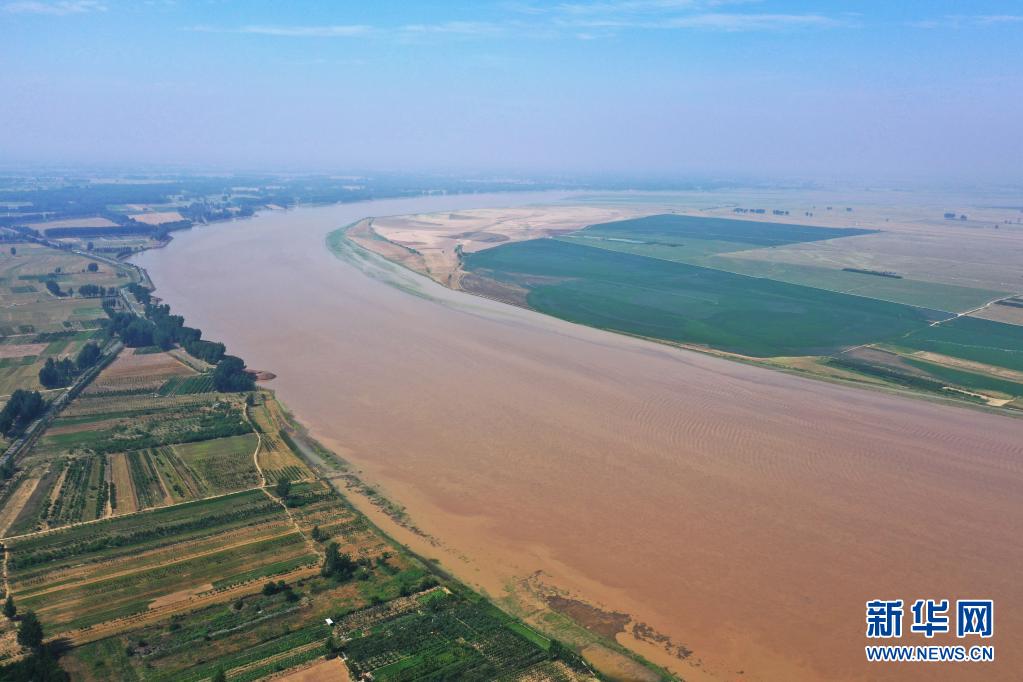 這是6月24日在河南省蘭考縣黃河灣風(fēng)景區(qū)拍攝的黃河(無(wú)人機(jī)照片)。
