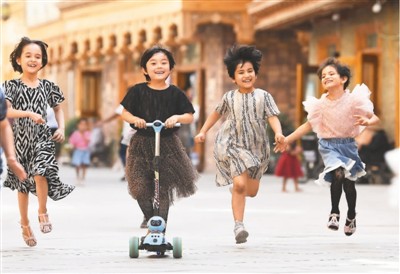 少年兒童是祖國的未來,民族的希望。我們黨始終高度重視少年兒童、親切關心少年兒童,讓孩子們有一個幸福的童年和美好的未來。圖為孩子們在新疆和田市團城的鴿子巷玩耍。