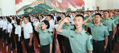 新黨員在展覽館宣誓。