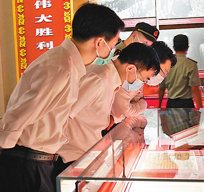 參觀者在觀看歷史文稿。