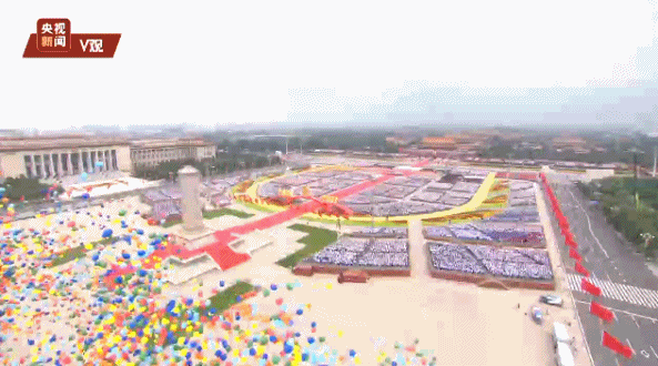 十萬羽和平鴿展翅高飛,數(shù)萬只彩色氣球騰空而起。在特殊機(jī)位里,更是多角度展示了這一壯闊畫面。
