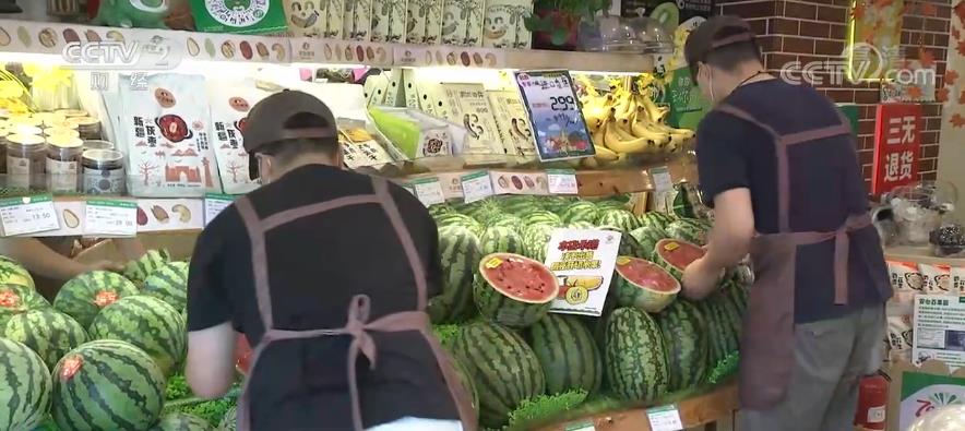 記者在北京一家水果連鎖門店看到,工作人員正在將剛剛采購(gòu)的西瓜、葡萄、桃子等鮮果擺上貨架。負(fù)責(zé)人楊文鳳告訴記者,6月份至今,北方時(shí)令鮮果和南方熱帶水果均進(jìn)入上市高峰期,水果供應(yīng)數(shù)量充足、品種豐富。