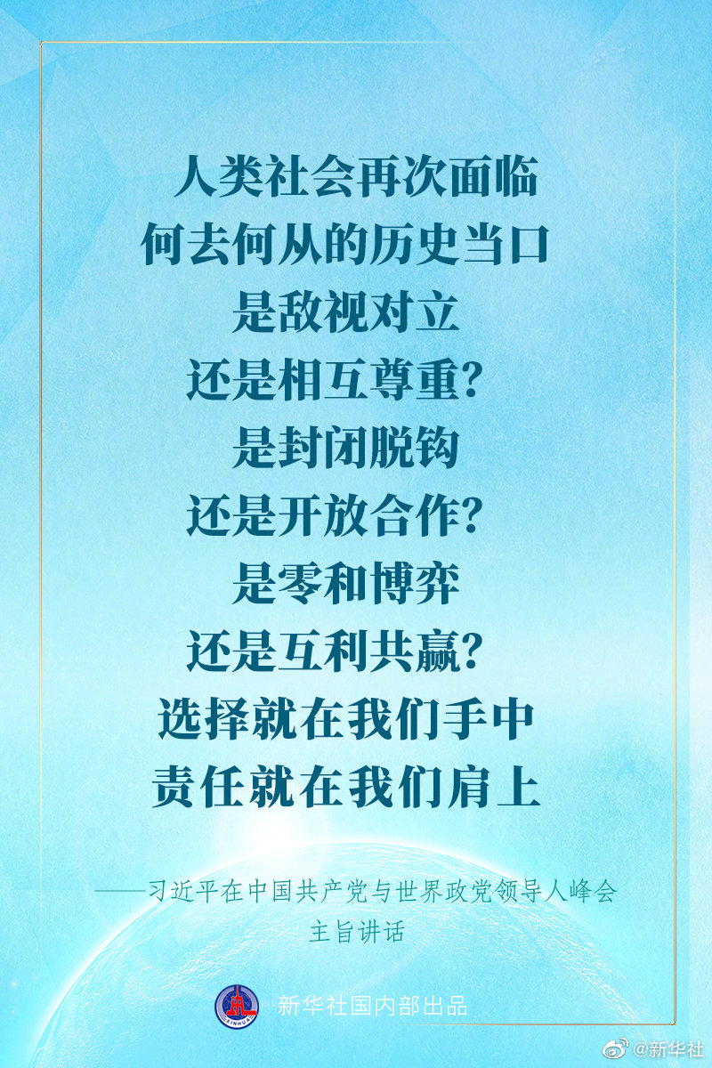 7月6日晚,中共中央總書記、國家主席習(xí)近平在北京出席中國共產(chǎn)黨與世界政黨領(lǐng)導(dǎo)人峰會并發(fā)表主旨講話。峰會以視頻連線方式舉行。一起來看金句↓