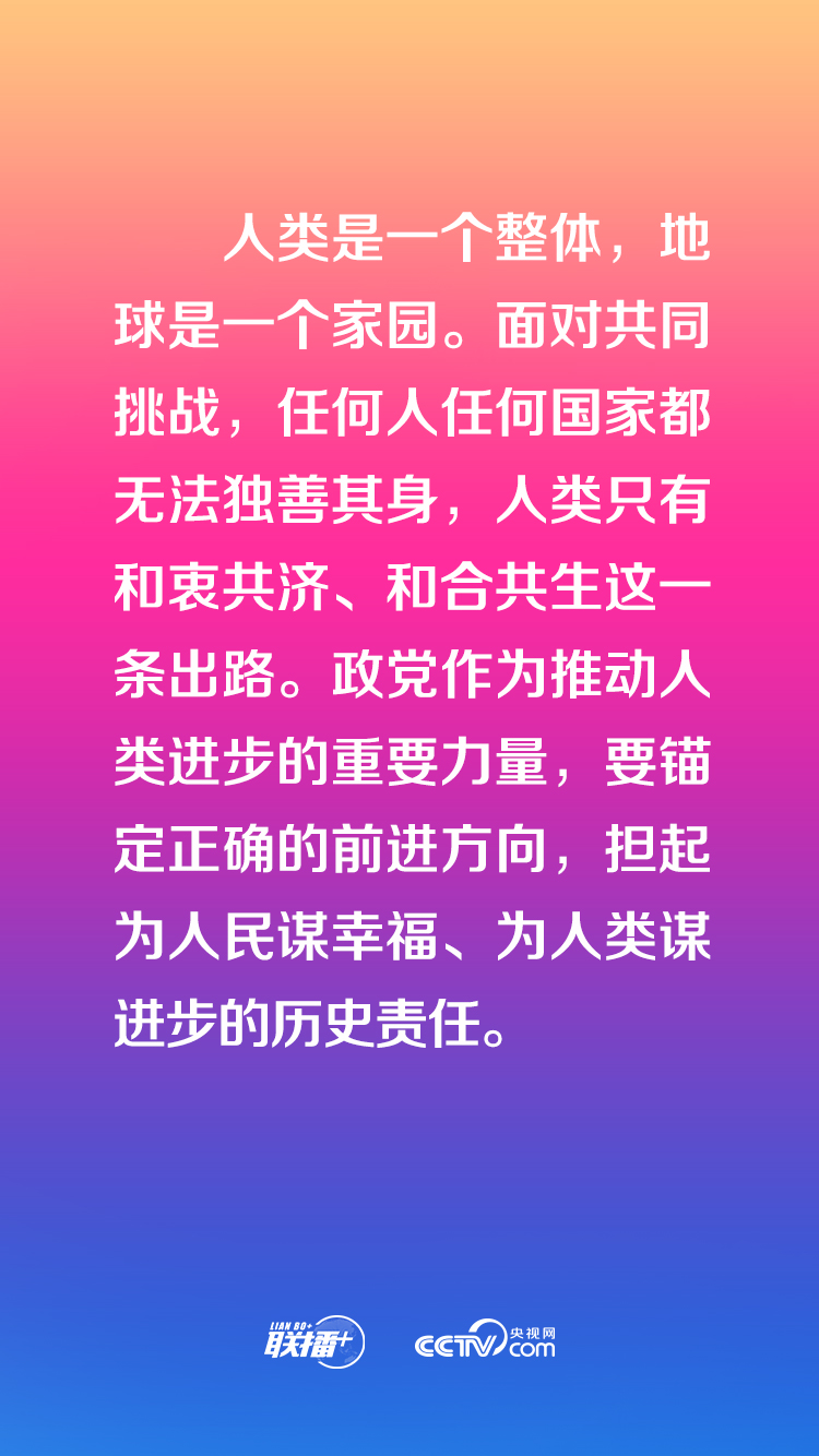 中國共產(chǎn)黨愿同各國政黨加強溝通,共同引導經(jīng)濟全球化朝著更加開放、包容、普惠、平衡、共贏的方向發(fā)展。