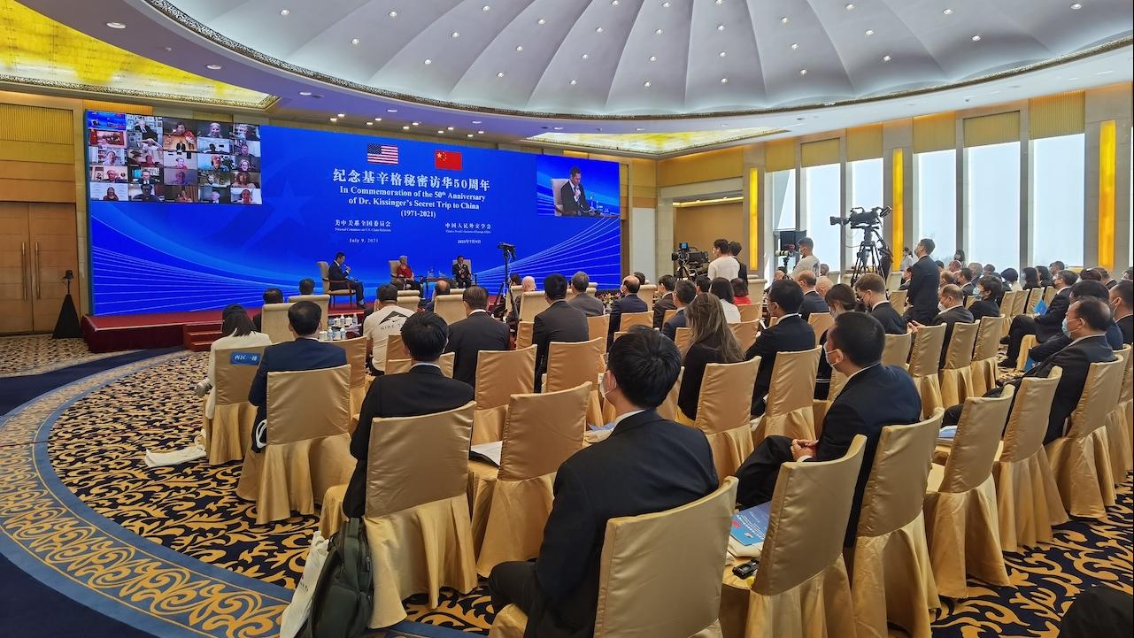 7月9日,紀(jì)念基辛格秘密訪華50周年活動(dòng)在北京舉行,美國(guó)前國(guó)務(wù)卿基辛格通過(guò)視頻連線發(fā)表講話,呼吁中美兩國(guó)應(yīng)該像50年前一樣,用對(duì)話和理解來(lái)解決分歧,兩國(guó)的對(duì)抗只會(huì)導(dǎo)致世界的分裂。中美代表等100余人現(xiàn)場(chǎng)參加活動(dòng),200多位美方各界人士通過(guò)視頻連線的方式參加活動(dòng)。