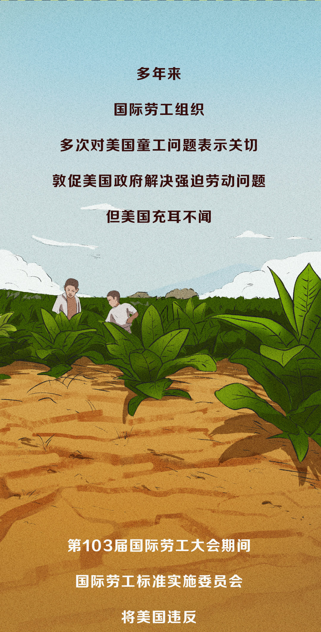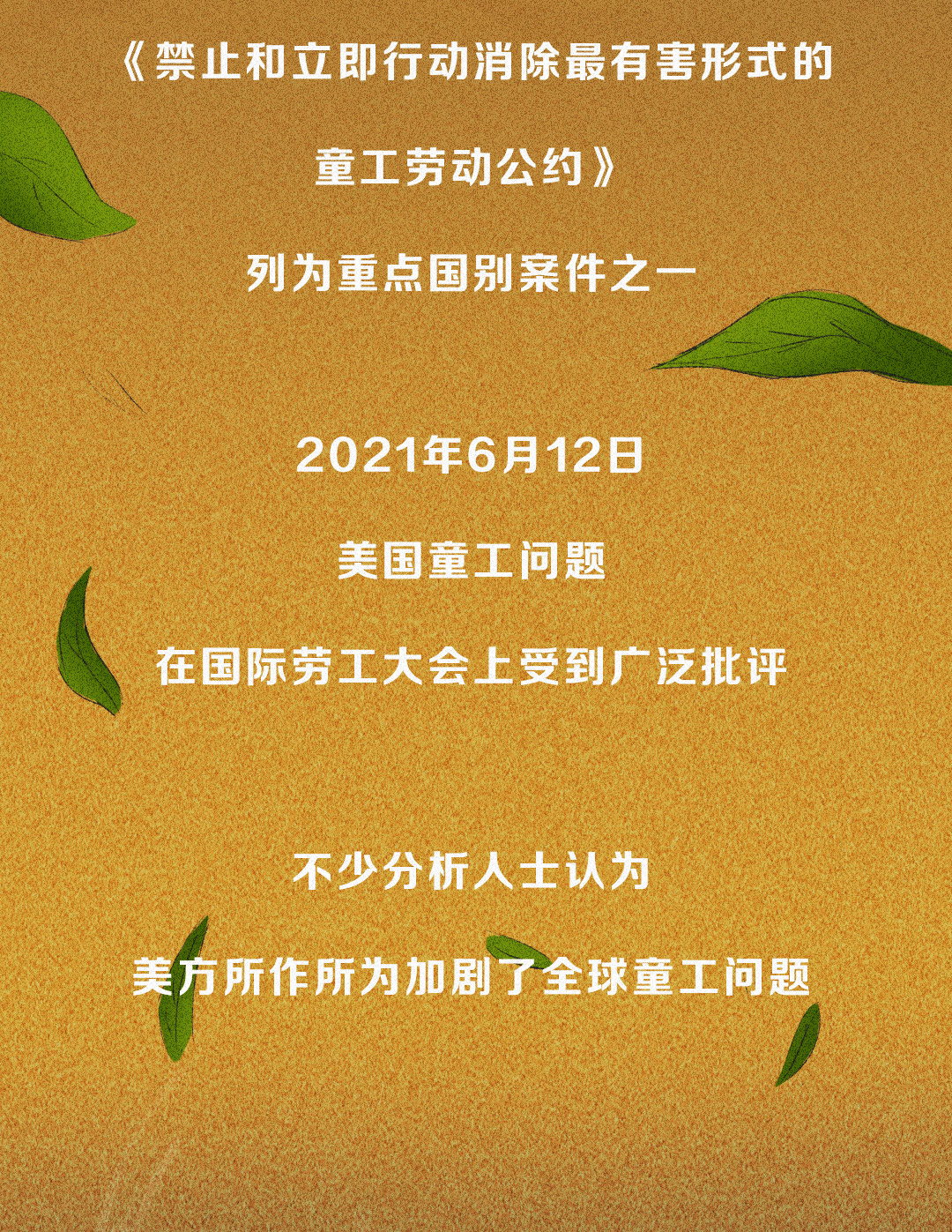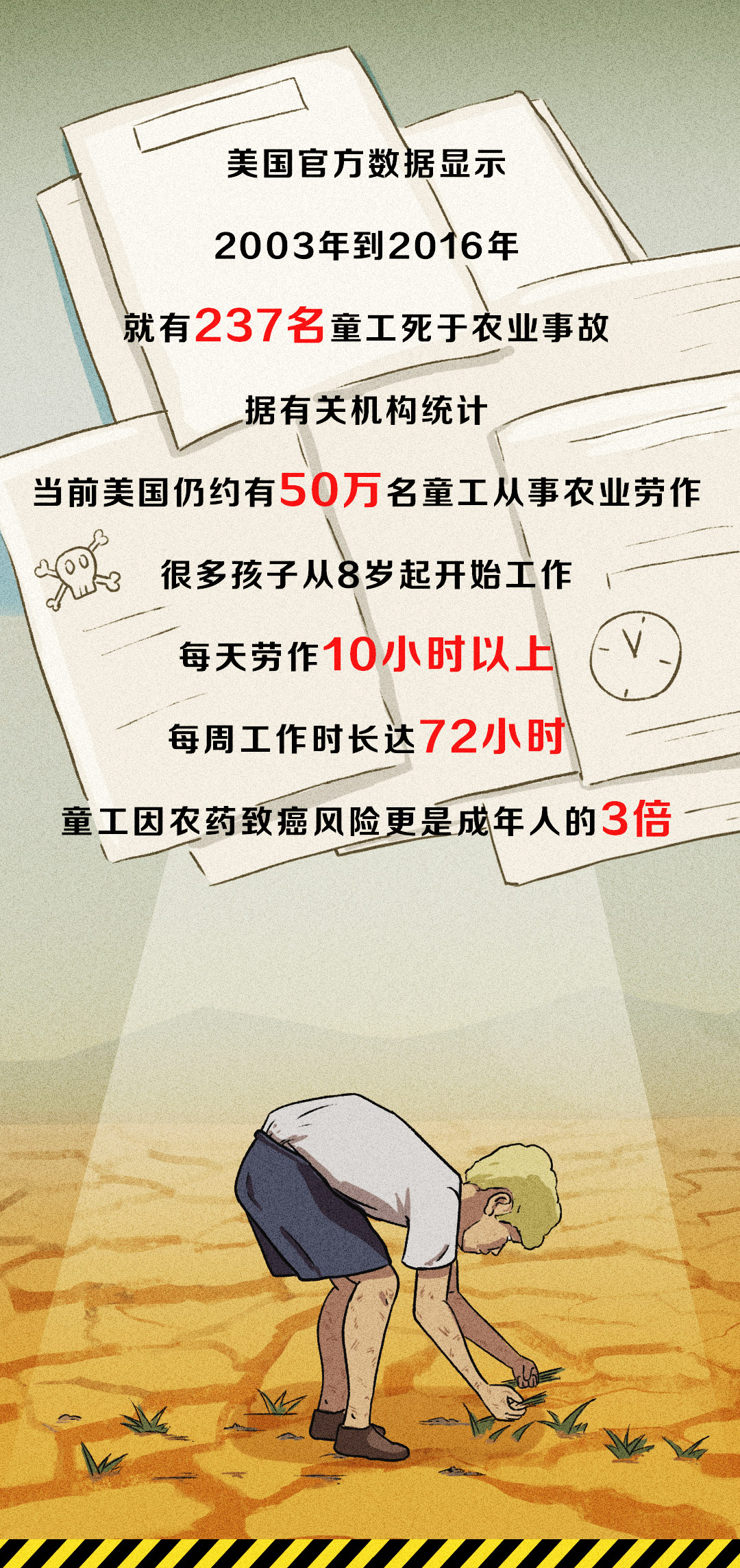 近日,國際勞工組織和聯(lián)合國兒童基金會最新報告揭露全球童工人數(shù)在今年出現(xiàn)了近20年來的首次反彈,據(jù)有關(guān)機構(gòu)統(tǒng)計,高呼人權(quán)至上的美國竟有約50萬名童工。一圖了解美國童工問題。