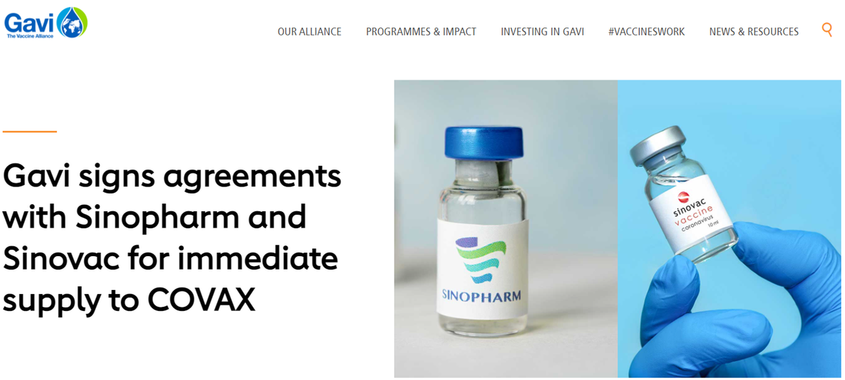 7月12日,疫苗聯(lián)盟全球免疫聯(lián)盟(Gavi)發(fā)布新聞公報(bào)稱,已與中國(guó)國(guó)藥集團(tuán)和科興公司分別簽署了預(yù)購(gòu)協(xié)議。