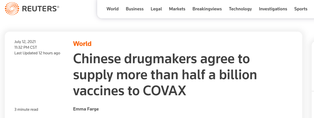 近日,有好消息傳出。當(dāng)?shù)貢r(shí)間7月12日,全球疫苗免疫聯(lián)盟(GAVI)宣布,中國(guó)國(guó)藥集團(tuán)和科興生物分別與“新冠肺炎疫苗實(shí)施計(jì)劃”(COVAX)簽署供應(yīng)疫苗的合作協(xié)議。兩家企業(yè)將于7月起向“新冠肺炎疫苗實(shí)施計(jì)劃”提供疫苗,用于發(fā)展中國(guó)家的新冠肺炎疫情防控。