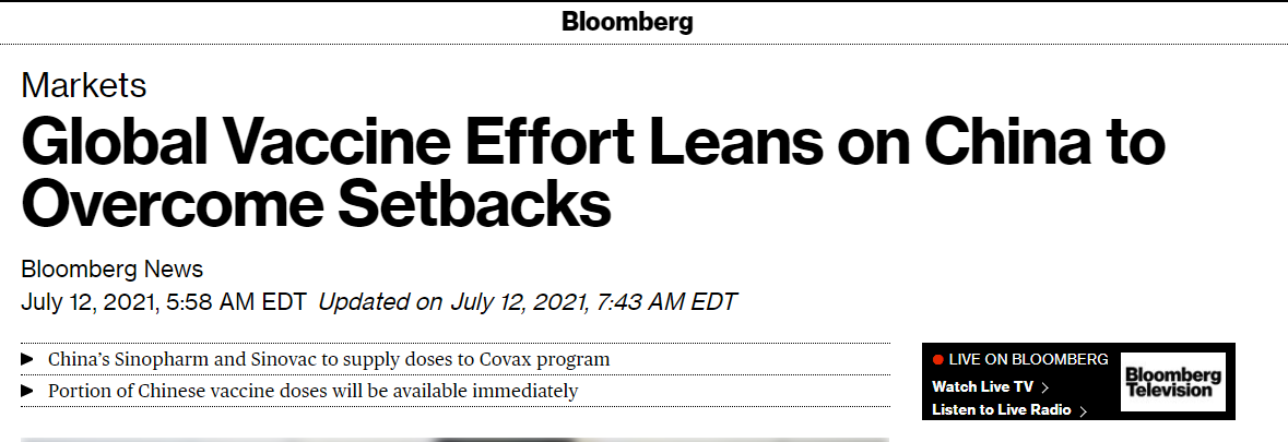 美國(guó)彭博社報(bào)道稱,在供應(yīng)短缺導(dǎo)致可挽救生命的新冠疫苗供應(yīng)出現(xiàn)明顯缺口后,世界的目光轉(zhuǎn)向中國(guó)。
