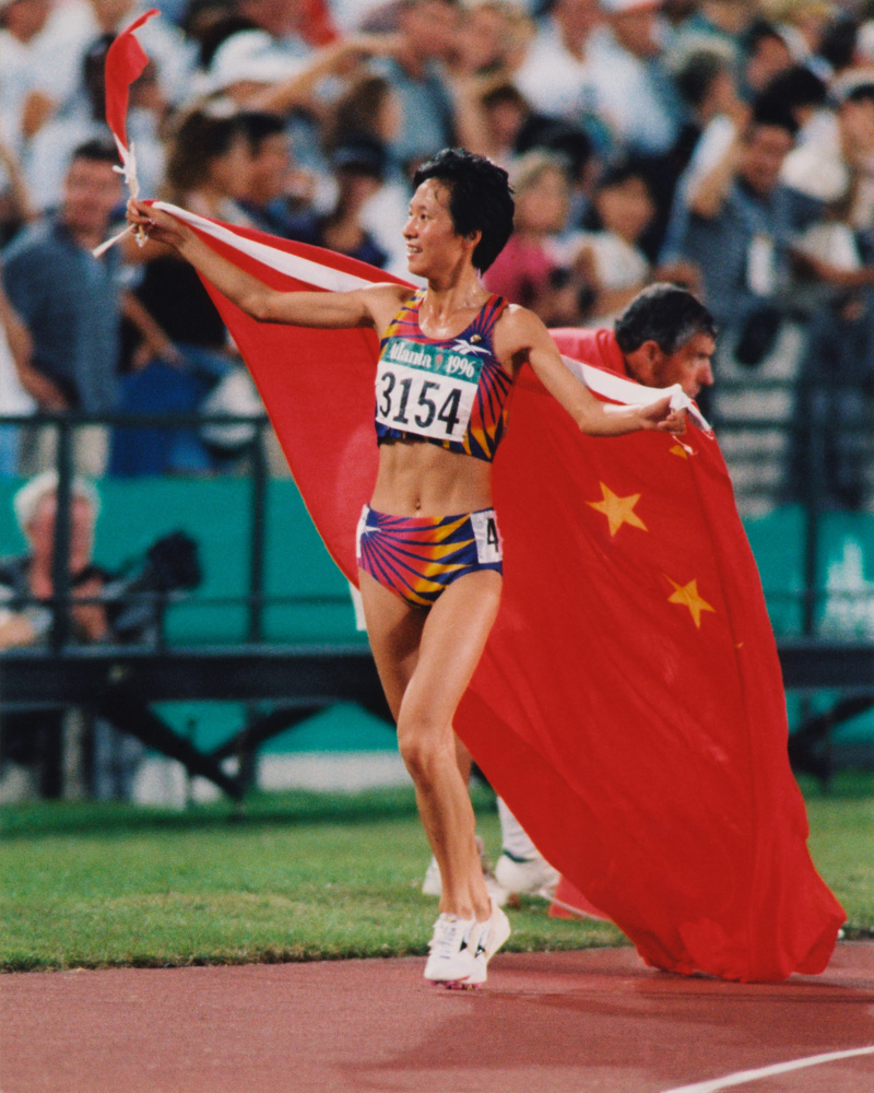 王軍霞披著鮮艷的五星紅旗