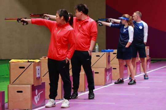 射擊10米氣手槍混合團(tuán)體決賽中
