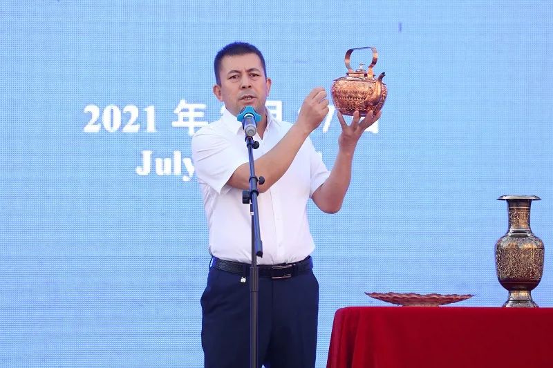 今年6月,喀什維吾爾族銅器制作技藝被確定為國(guó)家級(jí)非物質(zhì)文化遺產(chǎn)代表性項(xiàng)目。今天,在新疆國(guó)際大巴扎經(jīng)營(yíng)手工銅器的蘇來曼·麥麥提敏來到新疆維吾爾自治區(qū)在新疆國(guó)際大巴扎舉行的專場(chǎng)新聞發(fā)布會(huì)上講述了他現(xiàn)在的幸福生活。