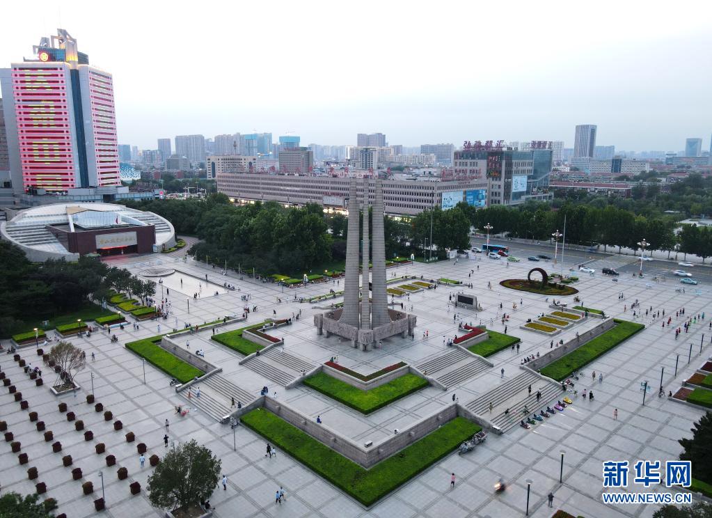 這是7月26日拍攝的唐山抗震紀(jì)念碑廣場(無人機(jī)照片)。