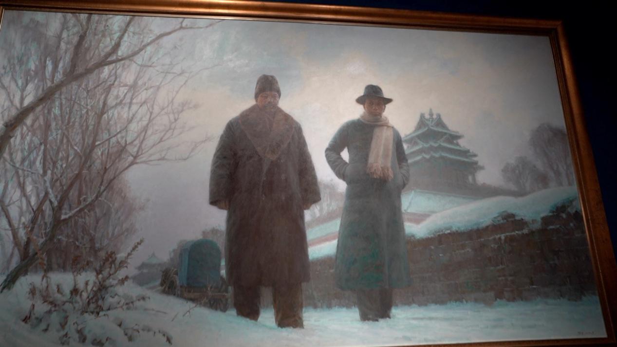 嘉興火車站復(fù)古站房油畫《開天辟地》。
