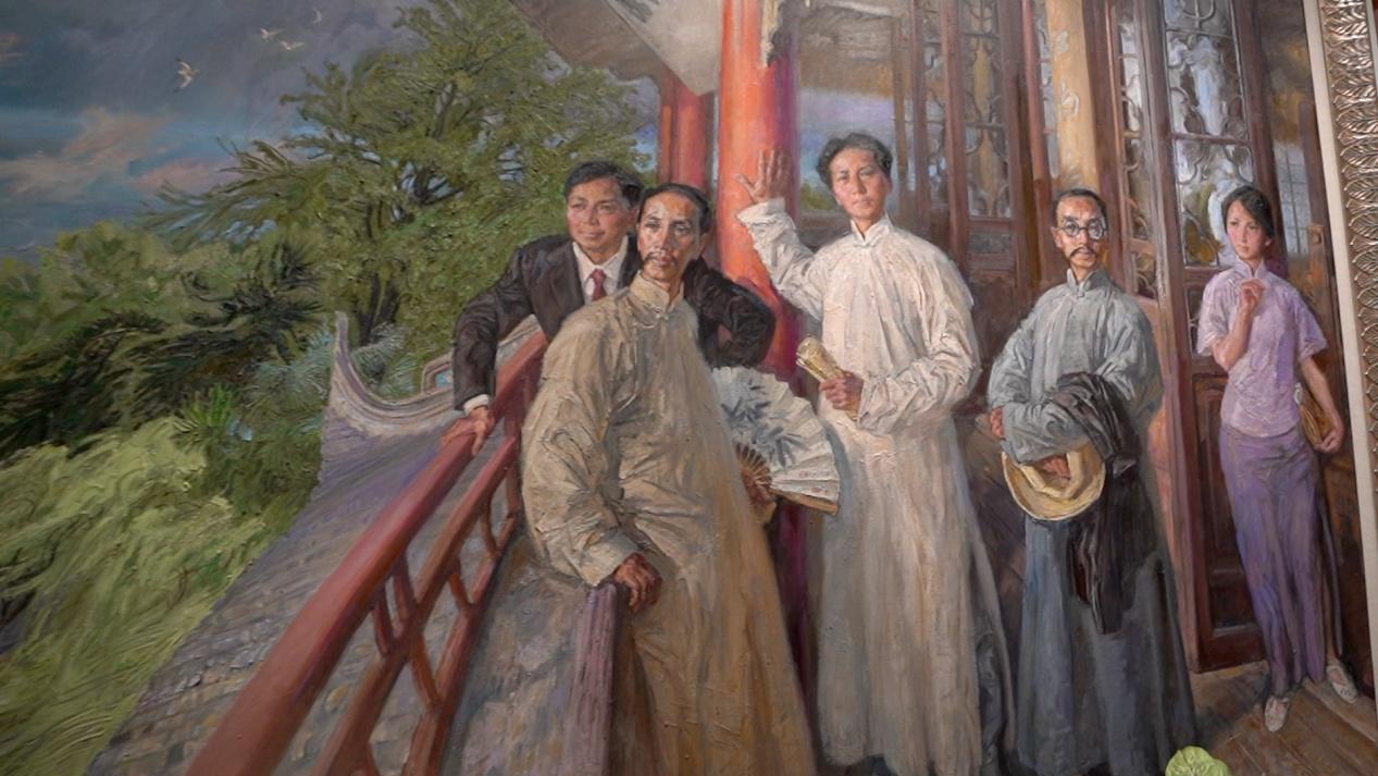 南湖革命紀(jì)念館油畫《南陳北李》。