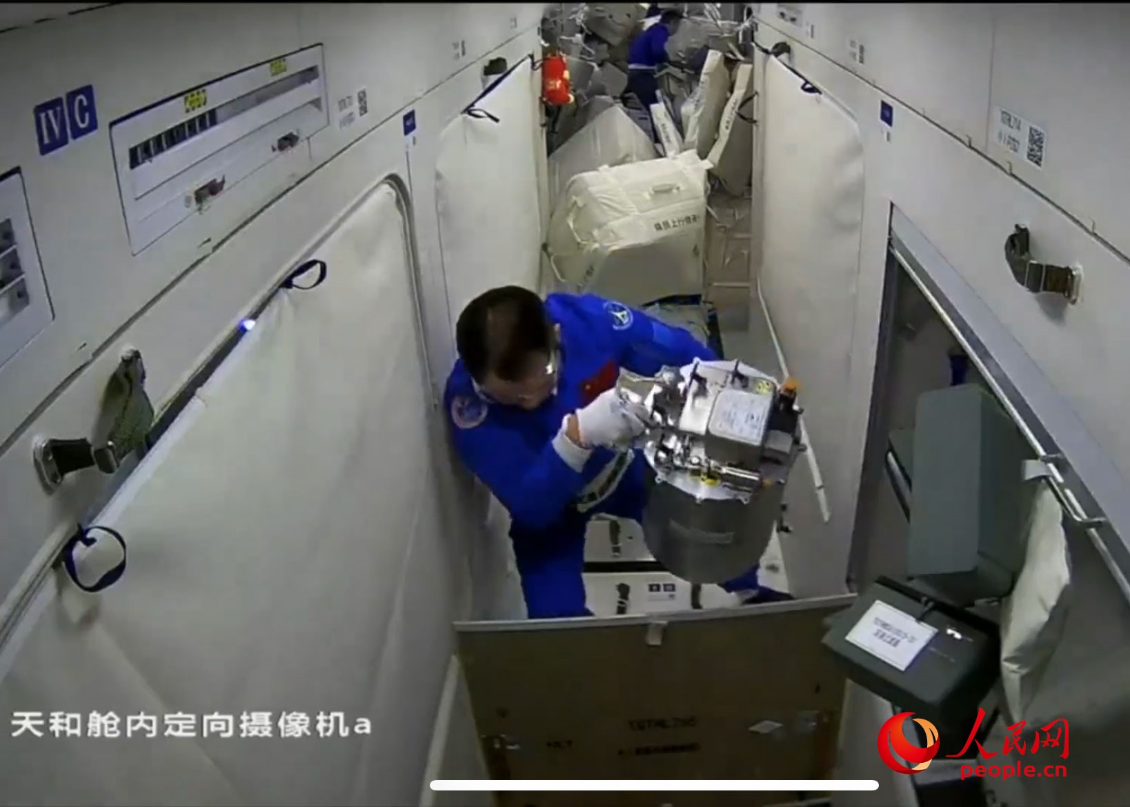 航天員聶海勝正在研究空間站天和核心艙中的衛(wèi)生設(shè)施。 視頻截圖