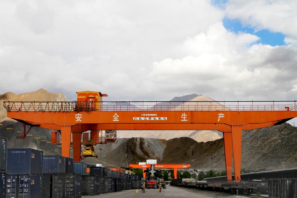 位于拉薩市堆龍德慶區(qū)乃瓊鎮(zhèn)的拉薩西站貨場(2021年7月29日)。新華社發(fā)(孫呈統(tǒng) 攝)