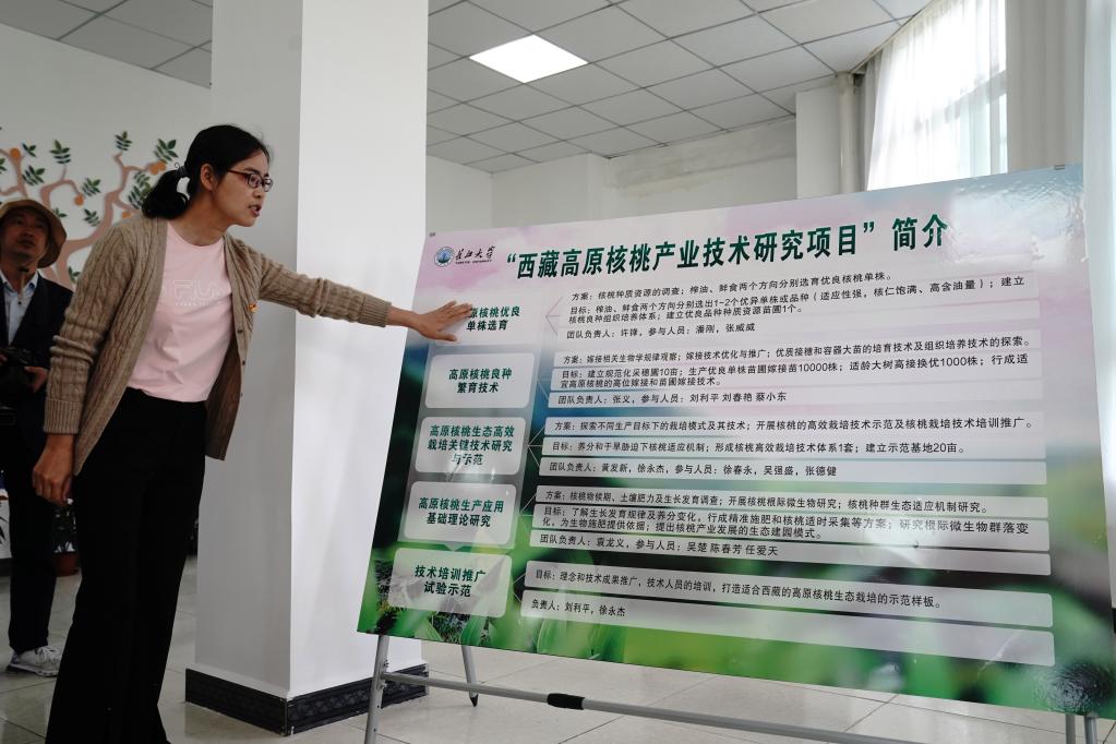 7月8日,長江大學西藏高原核桃產(chǎn)業(yè)研究所在山南市加查縣加查鎮(zhèn)龍巴村揭牌,近20人研究團隊將為當?shù)睾颂耶a(chǎn)業(yè)提供優(yōu)良品種選育、嫁接等科技服務(wù)。長江大學教師劉利平博士團隊在加查工作4個多月,研究核桃資源分布、病蟲害等。