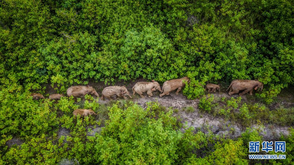這是8月9日在云南省玉溪市元江縣境內(nèi)拍攝的象群(無人機(jī)照片)。新華社記者 胡超 攝