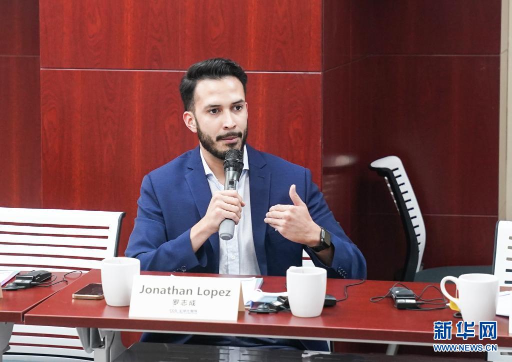 8月12日,哥倫比亞、加拿大雙國籍青年羅志成在“命運與共 青春力量”專題研討會上發(fā)言。新華社記者 陳曄華 攝