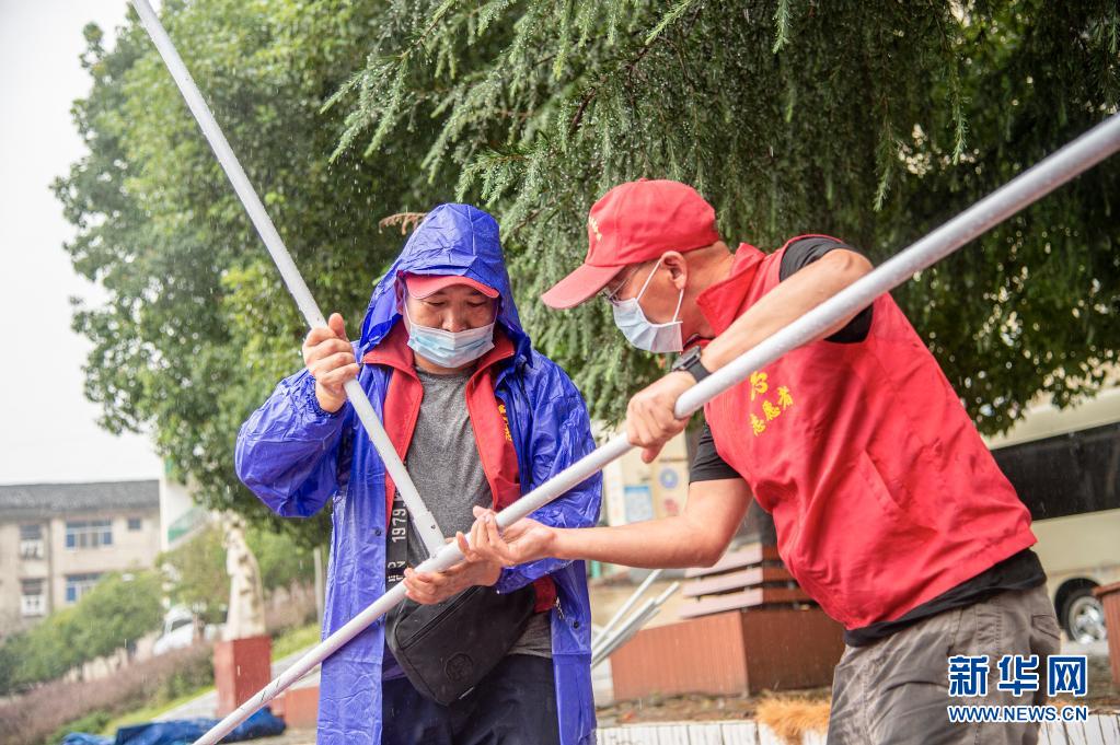 8月13日,救援人員在緊急搭建臨時(shí)安置點(diǎn)。