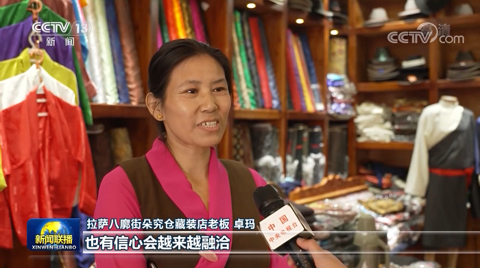 拉薩八廓街朵究倉藏裝店老板 卓瑪:大家關(guān)系特別好,我很喜歡這樣的環(huán)境,也有信心會越來越融洽。