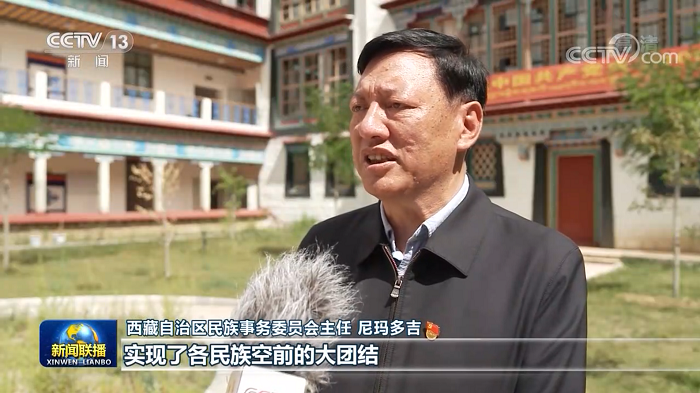 西藏自治區(qū)民族事務(wù)委員會主任 尼瑪多吉:在中國共產(chǎn)黨的堅強(qiáng)領(lǐng)導(dǎo)下,實現(xiàn)了各民族空前的大團(tuán)結(jié)。尤其是黨的十八大以來,在以習(xí)近平同志為核心的黨中央堅強(qiáng)領(lǐng)導(dǎo)下,不斷鑄牢中華民族共同體意識,以開放促交往、以發(fā)展促交流、以繁榮促交融,像石榴籽一樣緊緊擁抱在一起的民族關(guān)系不斷鞏固發(fā)展。(總臺記者 曾曉東 陳琴 德慶白珍 王磊 西藏臺 李旭 多吉仁青 拉巴次仁)