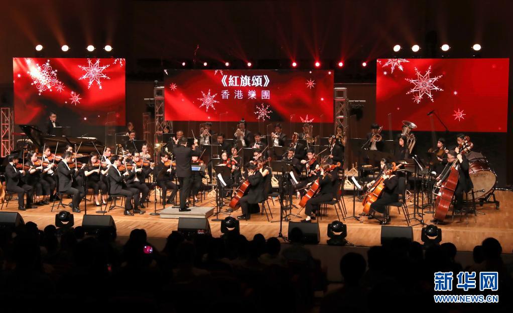 8月14日,香港樂團(tuán)在音樂會(huì)上演奏《紅旗頌》。新華社記者 吳曉初 攝