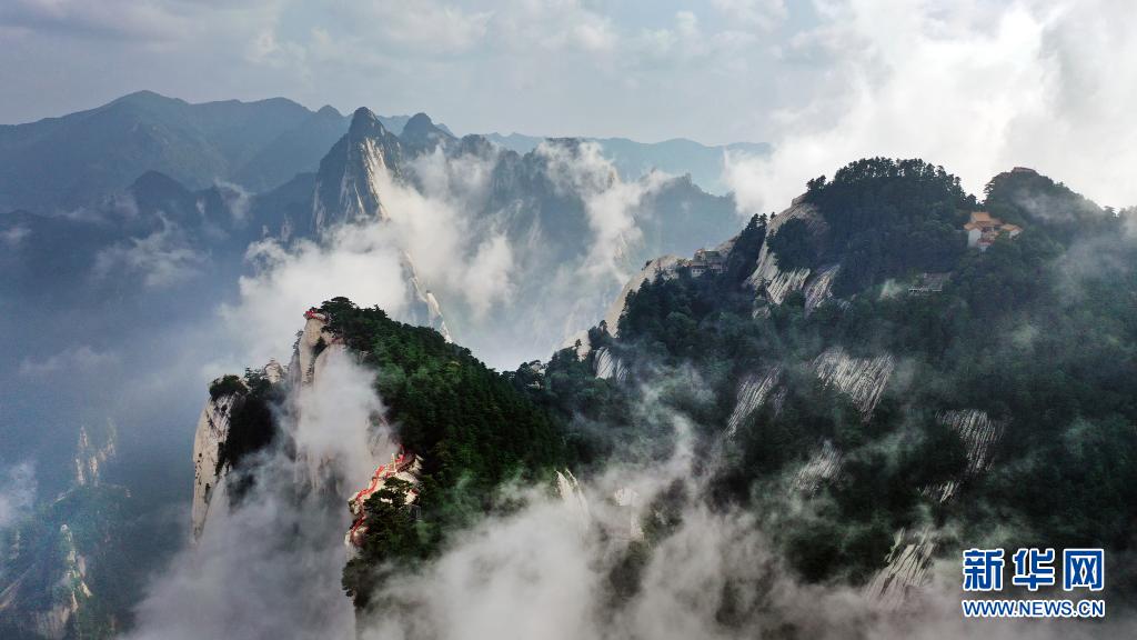 8月14日,奇景幻影的西岳華山風(fēng)光(無人機(jī)照片)。
