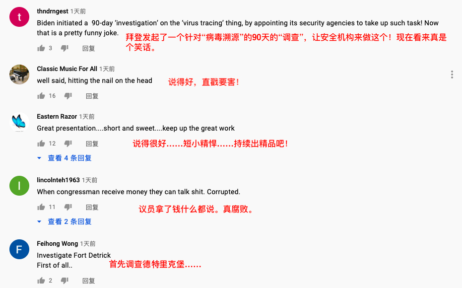 在西方媒體占主導(dǎo)的海外社交媒體平臺(tái),能夠取得關(guān)注和支持并不容易。但是這一揭露美政客對(duì)于新冠溯源陰謀的系列視頻擺事實(shí)、講證據(jù)、有邏輯、有新意,讓謠言不攻自破,自然能獲得更多人的贊同。就跟網(wǎng)友點(diǎn)評(píng)的一樣:“直戳要害!”