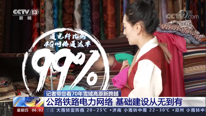 70年來,西藏已實現(xiàn)主電網(wǎng)全區(qū)覆蓋,建成多能互補的綜合能源體系。如今,從珠峰之巔到金沙江畔,從羌塘草原到邊境村鎮(zhèn),西藏全部建制村通光纖比例、4G網(wǎng)絡(luò)通達率均達99%,現(xiàn)代通信正讓西藏的百姓聯(lián)通世界。