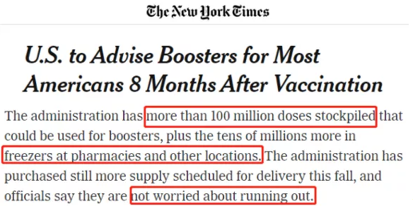 奉行“美國優(yōu)先”理念的白宮政客們面對全球“免疫鴻溝”從未選擇放棄“疫苗民族主義”,大量囤積遠(yuǎn)超其人口需要的疫苗,加劇全球疫苗分配不公!都~約時報(bào)》在18日的報(bào)道中提到,政府儲備了超過 1 億劑可用于加強(qiáng)劑的藥物,另外還有數(shù)千萬劑存放在藥房和其他地方的冷凍室中。政府購買了更多定于今年秋季交付的供應(yīng),官員們表示他們并不擔(dān)心會用完。