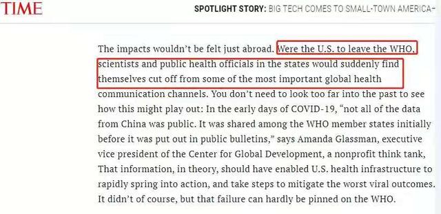 △美國《時代》雜志:如果美國離開世衛(wèi)組織,各州科學(xué)家和官員會發(fā)現(xiàn)自己與全球重要的衛(wèi)生溝通渠道切斷了。這在美國抗疫不力的情況下是不可理解的行為。