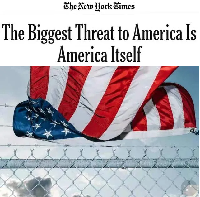 正如《紐約時報(bào)》文章所說,美國已經(jīng)失去了領(lǐng)導(dǎo)世界的能力,應(yīng)該更多關(guān)注自身的問題,因?yàn)椤懊绹畲蟮耐{就是美國自己”。