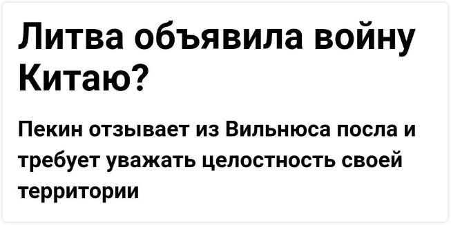 這是俄羅斯媒體“自由新聞網(wǎng)”對立陶宛最近一系列反華行動的諷刺。這篇名為《立陶宛對中國宣戰(zhàn)?》的報道中寫道:立陶宛政府已經(jīng)把自己逼入絕境。