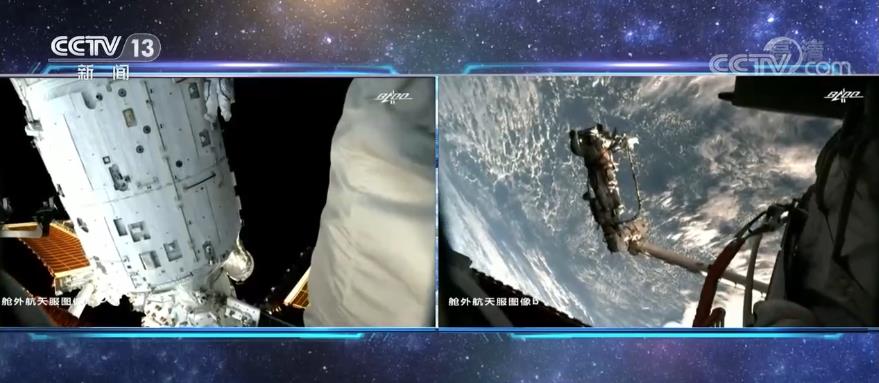 央視網(wǎng)消息:在今天(8月20日)的中國(guó)空間站航天員第二次出艙活動(dòng)中,通過(guò)我們的獨(dú)家畫(huà)面,我們也見(jiàn)證了航天員在太空的互拍,當(dāng)時(shí)劉伯明幾乎是掛在空間站上,聶海勝站在了他前方的機(jī)械臂上,背景是藍(lán)色的地球。到底有多酷炫,一起來(lái)欣賞一下。