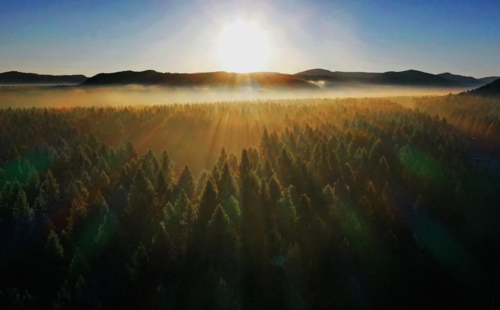 2021年6月27日拍攝的塞罕壩國(guó)家森林公園晨景(無人機(jī)照片)。新華社記者 楊世堯 攝