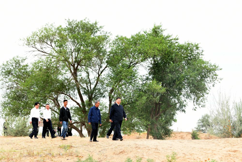 ↑2019年8月21日,習(xí)近平來到甘肅武威市古浪縣八步沙林場,實(shí)地察看當(dāng)?shù)刂紊吃炝、生態(tài)保護(hù)等情況。