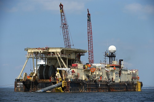 △當(dāng)?shù)貢r(shí)間2018年8月16日,德國(guó)盧布明附近的波羅的海,管道船在海里鋪設(shè)“北溪-2”天然氣管道。