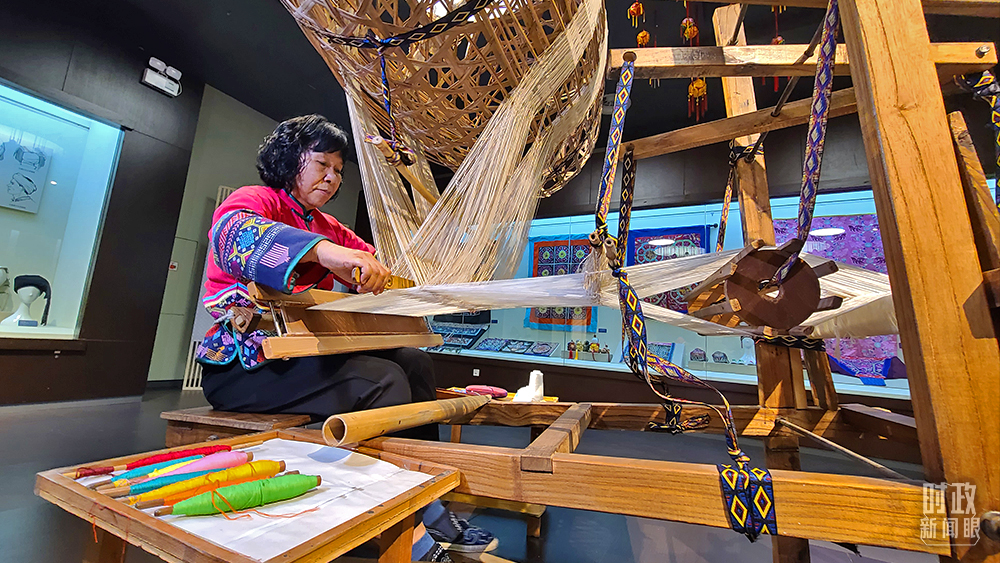 △壯錦是國家級非遺,以結(jié)實耐用、圖案別致著稱。66歲的譚湘光是廣西壯錦技藝傳承人。(總臺央視記者趙化拍攝)