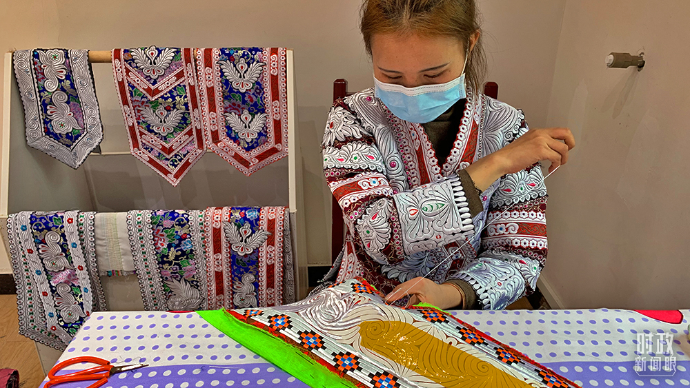 △苗繡是貴州化屋村的傳統(tǒng)文化,更是推動鄉(xiāng)村振興的特色產(chǎn)業(yè)。(總臺央視記者段德文拍攝)