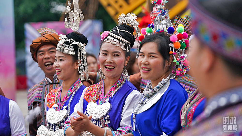 △今年2月,習(xí)近平來到貴州化屋村考察,當(dāng)?shù)卮迕裼脷g快的苗家歌舞迎接總書記。(總臺央視記者王哈男拍攝)