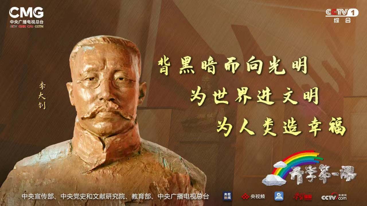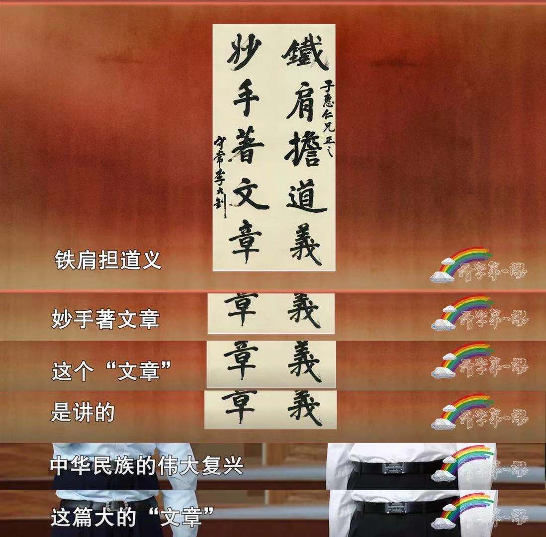 “鐵肩擔(dān)道義,妙手著文章”,在接受《開學(xué)第一課》的訪談時,李大釗之孫李亞中說到了祖父寫的這副對聯(lián),“這個‘文章’是講的中華民族的偉大復(fù)興這篇大的‘文章’!