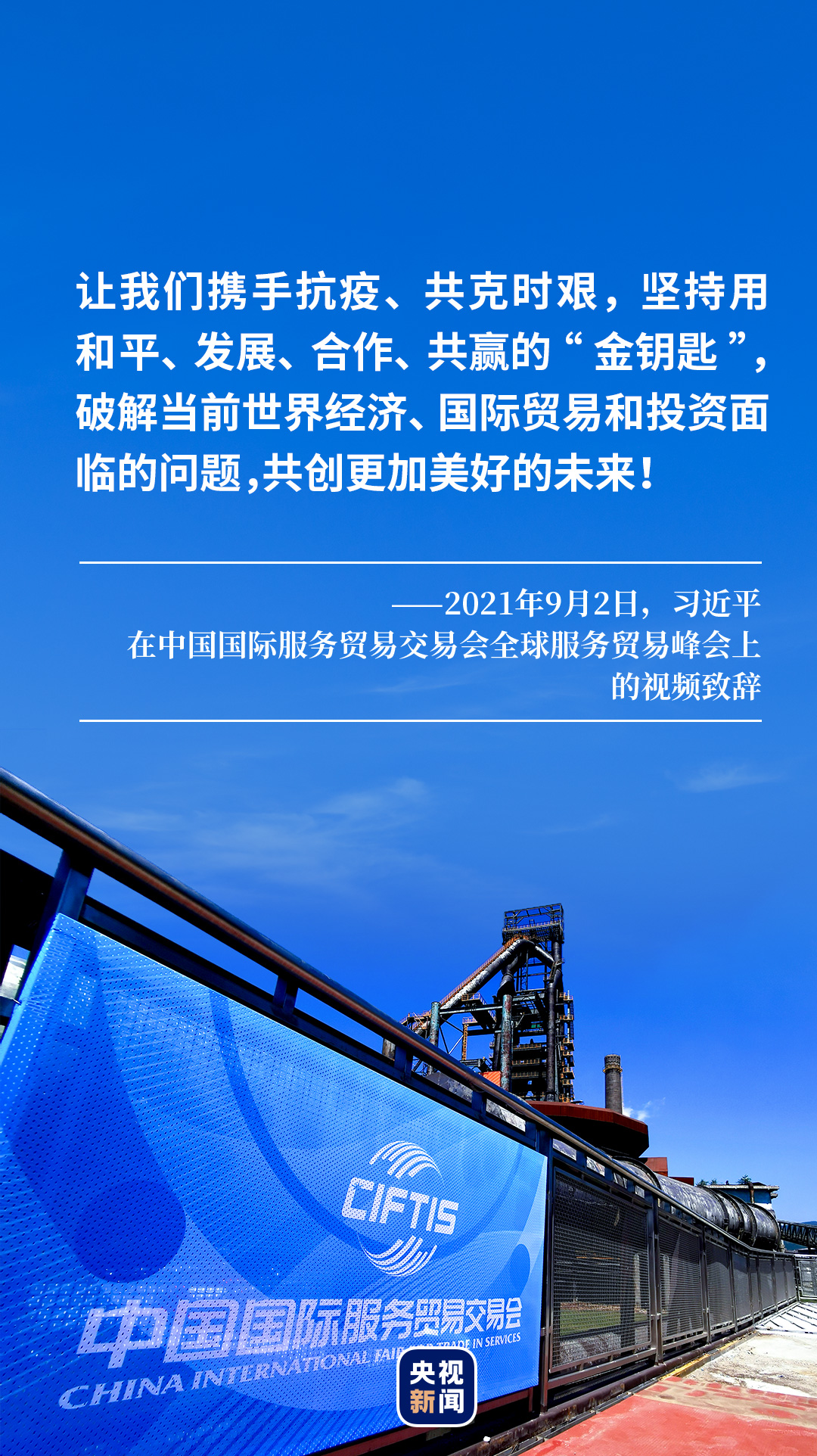 一年后,在2021年服貿(mào)會(huì)的致辭中,習(xí)近平主席重申全球要攜手抗疫、共克時(shí)艱,開(kāi)創(chuàng)互利共贏的合作局面,共創(chuàng)更加美好的未來(lái)!