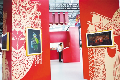 觀眾在服貿(mào)會(huì)文旅服務(wù)專題展區(qū)“大戲看北京——京劇文化之旅特展”參觀。特展設(shè)置了多個(gè)京劇主題體驗(yàn)區(qū),讓觀眾沉浸式感受京劇文化的魅力。