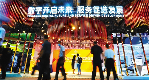 本屆服貿(mào)會(huì)主題為“數(shù)字開啟未來(lái),服務(wù)促進(jìn)發(fā)展”,重點(diǎn)展示有關(guān)國(guó)家和地區(qū)、我國(guó)各省區(qū)市及港澳臺(tái)服務(wù)貿(mào)易特色優(yōu)勢(shì)和最新成果。(經(jīng)濟(jì)日?qǐng)?bào)記者翟天雪攝影報(bào)道)