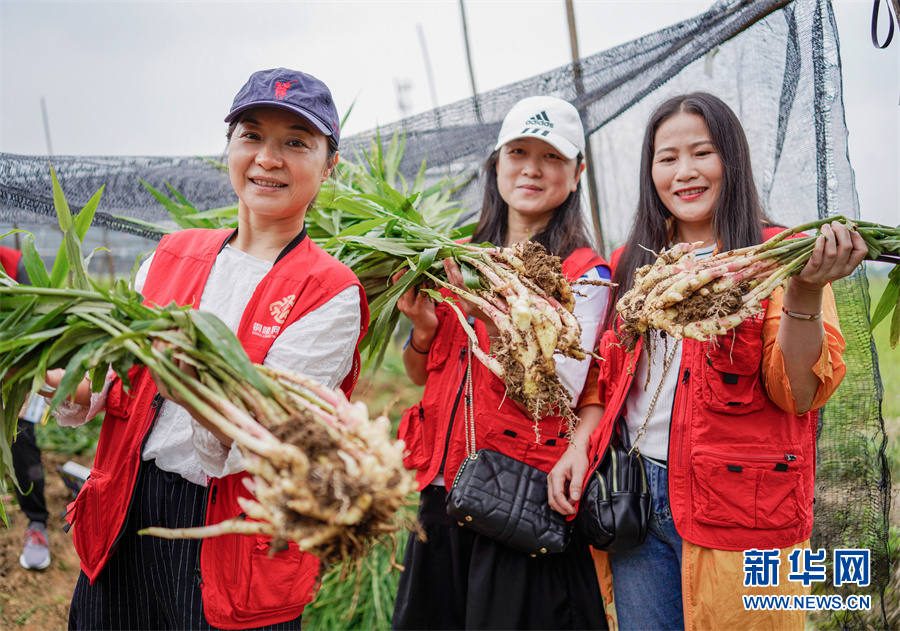 9月7日,安徽省銅陵市義安區(qū)天門鎮(zhèn)天門村,當(dāng)?shù)鼐W(wǎng)絡(luò)公益大使、志愿者等來到農(nóng)戶姜田,免費(fèi)幫助姜農(nóng)采收、推銷白姜。