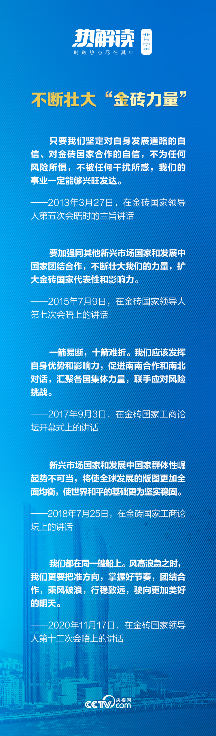 習(xí)近平主席十分重視金磚國(guó)家合作,一直親力親為推動(dòng)“金磚力量”不斷壯大。
