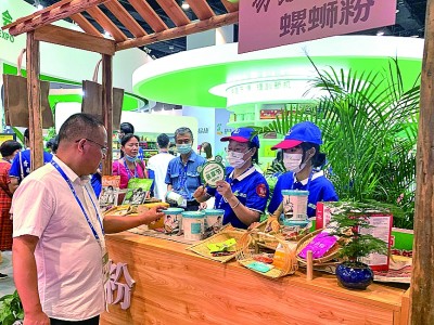 觀眾在螺螄粉展臺(tái)前咨詢。本報(bào)記者 藺紫鷗攝/光明圖片