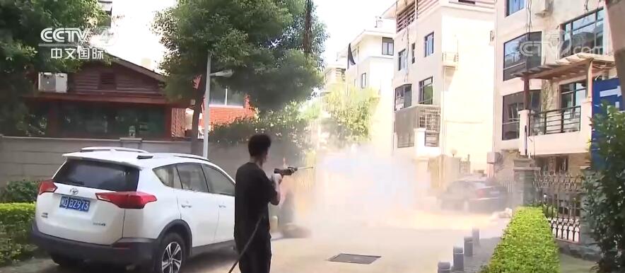 從9月19日起,廈門小區(qū)重點(diǎn)公共區(qū)域已開啟每日至少兩次消殺工作。在廈門市集美區(qū)古龍明珠小區(qū)記者看到,物業(yè)工作人員正在使用高壓沖洗消殺兩用機(jī),消毒架空層、過道等區(qū)域。